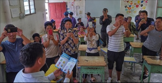 ● 正在上培训课的阿布洛哈村民用4G手机将精彩视频分享给家人。拍摄于2020年6月27日