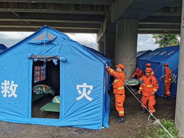 截至今天上午,消防指战员共搭设了救灾帐篷120余顶,安置了250余户村民。