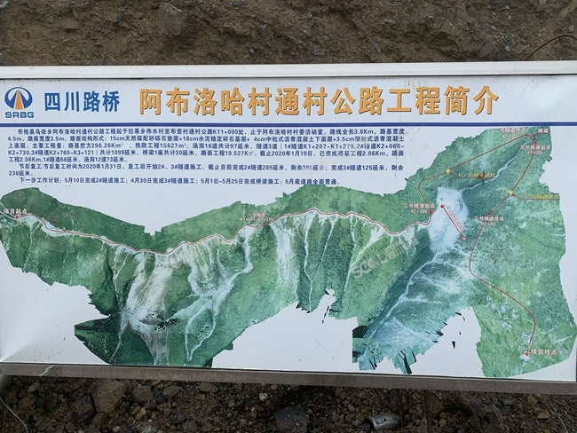 公路项目起于拉果乡布歪村,止于乌依乡阿布洛哈村小学,全长3.8公里,绝大部分路段都位于接近垂直的峭壁上,其中包括3座隧道、1座战备钢桥,桥隧比近30%。
