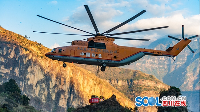 为加快进度,增加施工作业面,项目建设期间,还首次从省外专门调运全世界当前仍在服役的最大直升机米-26吊运机械设备。