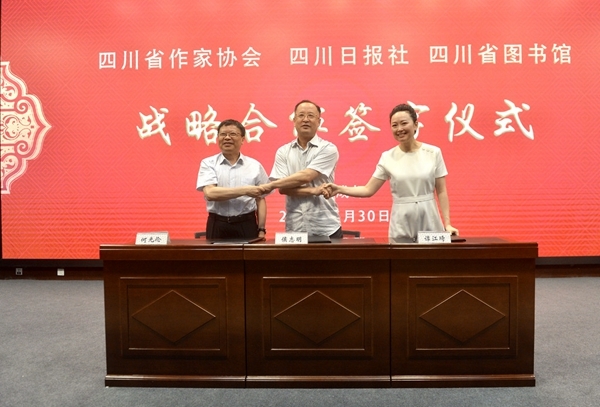 6月30日,四川省作家协会、四川日报社、四川省图书馆签署战略合作协议,围绕“文学照亮生活·阅读成就人生”主题,共同开展一系列活动,打造四川文化新品牌。