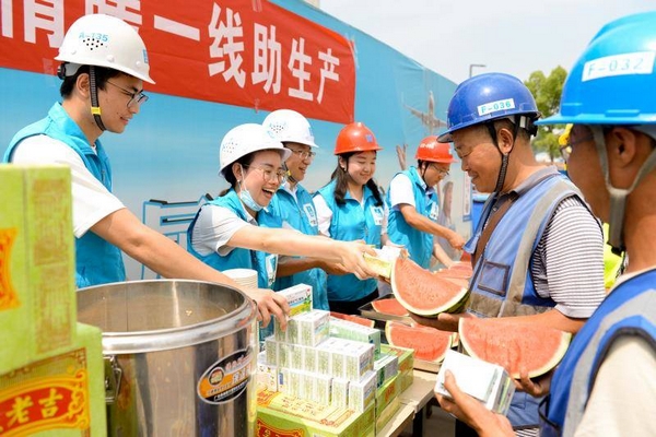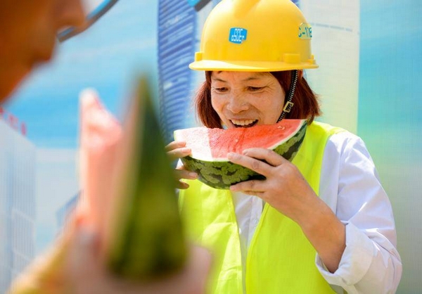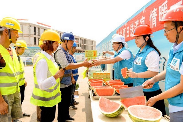 据该项目工会主席薛蝉介绍,项目每年夏季都会开展送清凉活动。今年由于疫情的原因,项目通过将在贫困地区采购的凉茶、西瓜等防暑降温物资发放到每一位建筑工人手中的方式,以此来促进消费,同时也有效的推动了疫情后的复工复产。