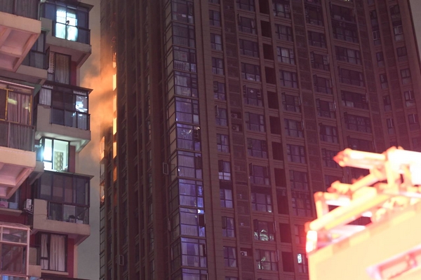 事发栋居民:事发时没有接到物管通知 听到有声音下楼才发现着火了