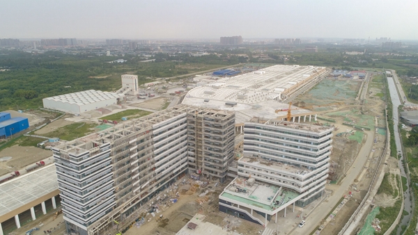 五桐庙停车场占地451亩,是全线重点控制性工程之一,含洗车机棚、受电弓轮对检测棚、综合楼、食堂及公寓、运用库运转综合楼等15个单体建筑的结构、装修及场区附属、场坪、绿化等,总建筑面积约17.7万平方米。项目建成移交后,将为该线路列车提供停放、检修、整备、清洗等多项服务,是一座集多项功能于一体的高品质“地铁列车之家”。