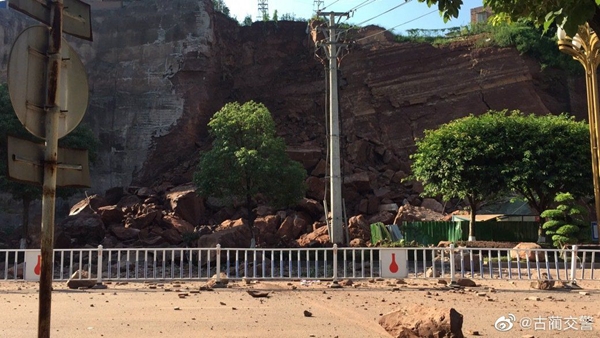 7月3日上午10时,古蔺交警发布最新路况信息:S312线古蔺镇金兰大酒街加油站路段处发生边坡坍塌,造成该路段交通受阻中断。为确保安全,交管部门已分别在兰尊红绿灯和凤凰城路口设置管制点,实施双向交通管制,禁止车辆和行人从地灾路段通过。恢复通行时间另行通知。