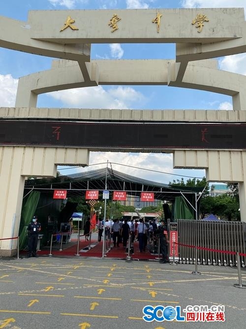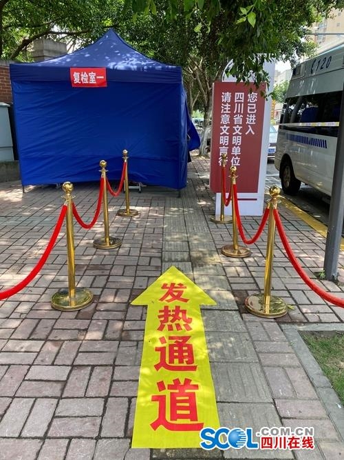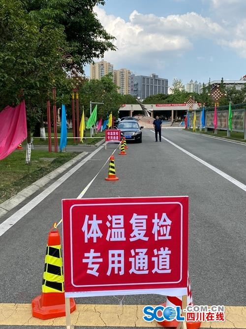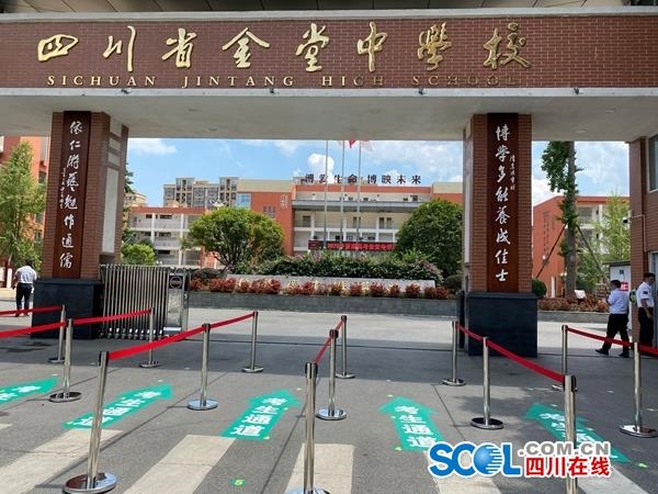 在四川省金堂中学,记者看到,大门口区域隔离出了9条“考生通道”和1条“发热通道”,每条通道的地面上都贴了间隔站立的标识。据介绍,考试当天,工作人员首先要在大门口用手持测温枪对考生进行体温初测,体温正常者可以进入学校大门。再通过复检室的红外线体温检测设备后,最后进入考场安检。