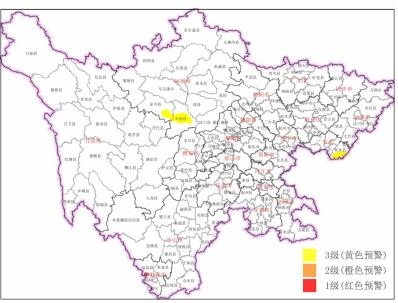 7月3日,省地质灾害指挥部办公室发布全省地质灾害气象风险预警,结合四川省气象台天气预报情况7月3日20时~7月4日20时,广安邻水县,阿坝州金川县、小金县为地质灾害气象风险3级预警(黄色预警)。