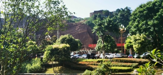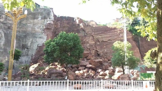 目前,酒街边坡垮塌现场正在进行坡底打围,车辆已经可以通行,为预防山石滚落,相关部门已调集4辆满载砂石,总重70吨的货车排在坡底,以保护行人车辆。