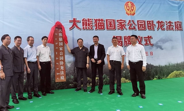 7月3日, 经省法院批准,大熊猫国家公园卧龙法庭在阿坝州汶川境内的卧龙特别行政区揭牌成立。这既是全国也是四川首个大熊猫国家公园法庭,标志着四川法院初步构建起了大熊猫国家公园相关司法保护工作的新框架,开启了四川司法护航生态环境保护和绿色发展的新征程。