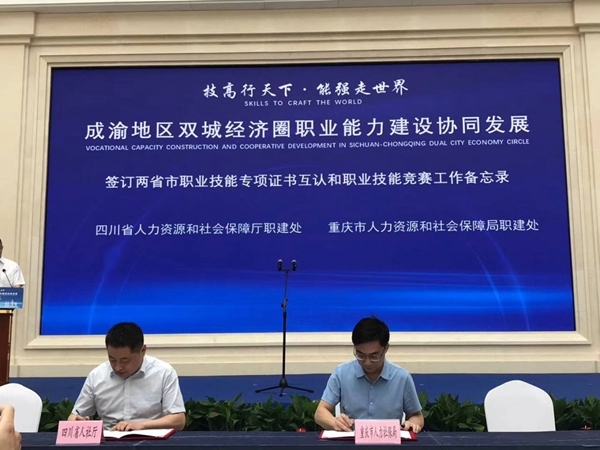 7月3日,在重庆市举行的成渝地区双城经济圈职业能力建设协同发展启动仪式上,四川和重庆两省市联合发布2020年川渝职业能力建设工作重点合作事项,签订职业技能等级和专项证书互认备忘录备。未来川渝两地将从技工教育、技能培训、评价竞赛、平台共建共享等多个方面深化协作,共同培养规模宏大、技艺精湛的高素质产业技能人才,为加快推动成渝双城经济圈高质量发展提供坚实的技能人才支撑。