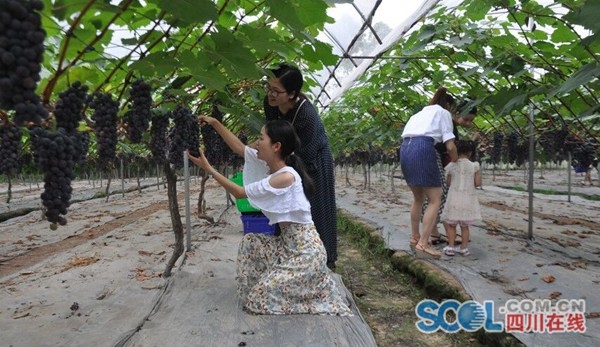 四川在线消息(记者 秦勇 文/图)7月4日,自贡沿滩区“仲夏之旅、水果采摘”活动在该区沿滩镇果立方葡萄园启动。