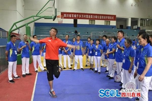 四川在线消息(记者 钱晞)为丰富群众文化体育生活,提升基层人民群众对精神文化体育的需求,促进群众物质精神双脱贫。6月29日,备受关注的四川省“百城千乡万村”柔力球公益培训(雷波站)开班仪式在雷波县民族体育馆举行。我省柔力球资深专家、国家级教练张从蓉、刘进等为雷波县的120余名体育爱好者进行了为期两天的柔力球项目健身技术培训。