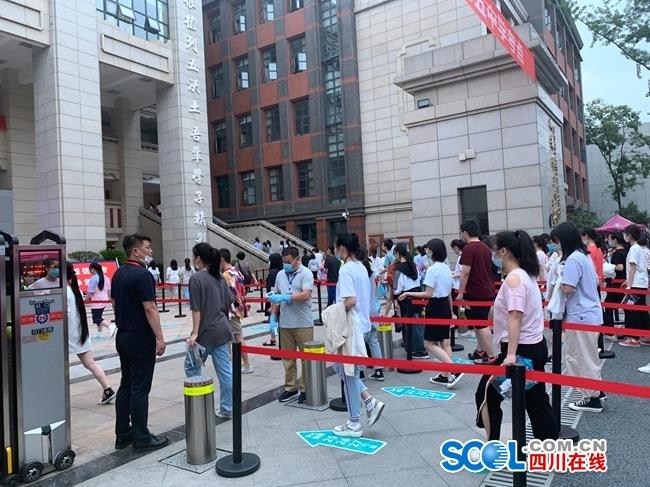 四川在线消息(记者 李丹 肖雨杨 摄影报道)7月7日早上8:20,记者从四川省国家教育考试考务指挥中心大屏看到,各地考生正在陆续进入考场,秩序良好。