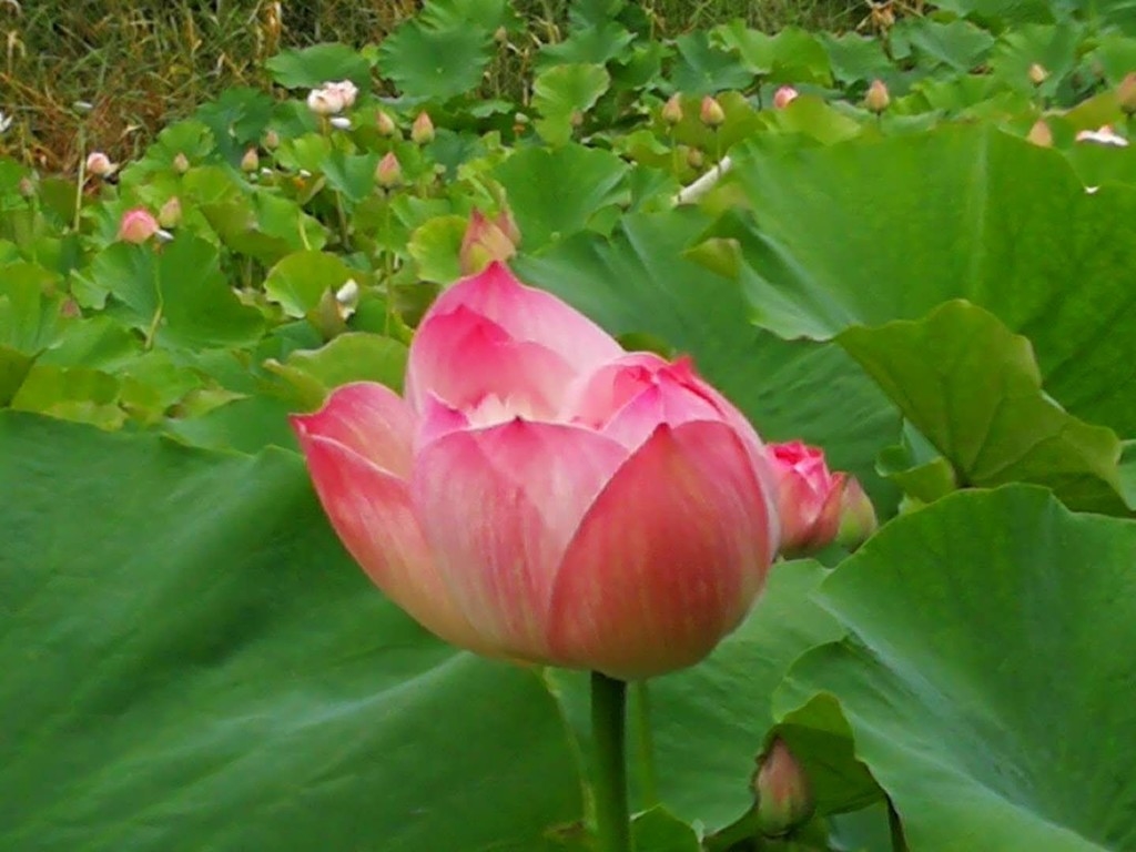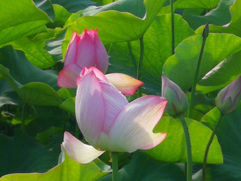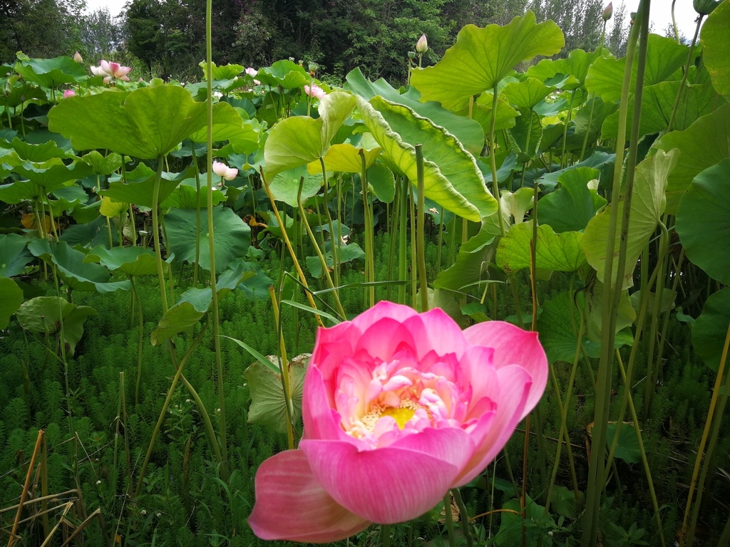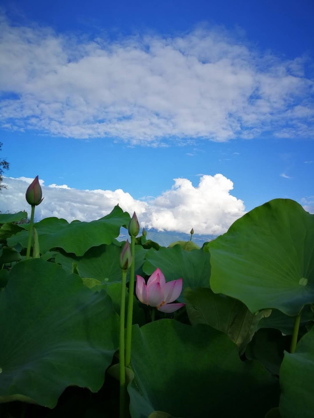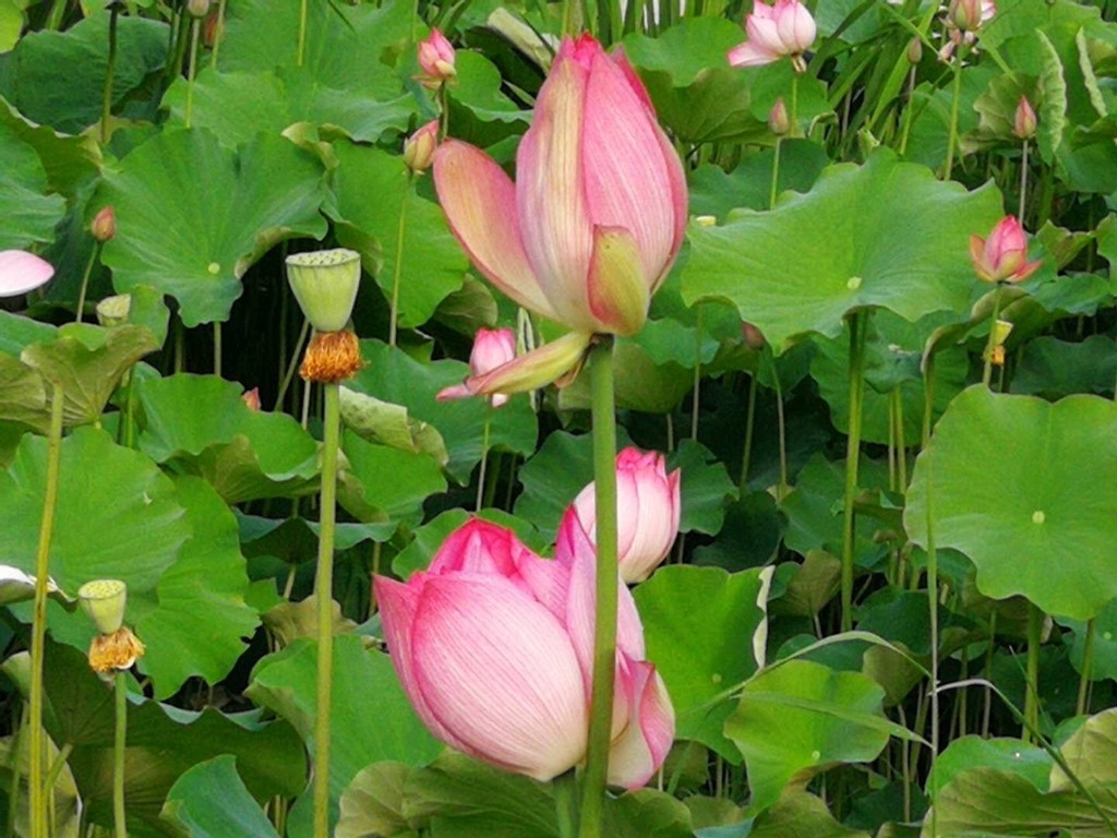 这段时间,在西昌邛海湿地,成片荷花争相绽放,远远看去,绿叶铺满湿地边缘,一朵朵荷花从期间冒出,有的已完全盛开,颜色靓丽,引来蜻蜓点点,有的含苞待放,粉嫩粉嫩惹人怜,已经凋谢的荷花,露出一个个莲蓬。