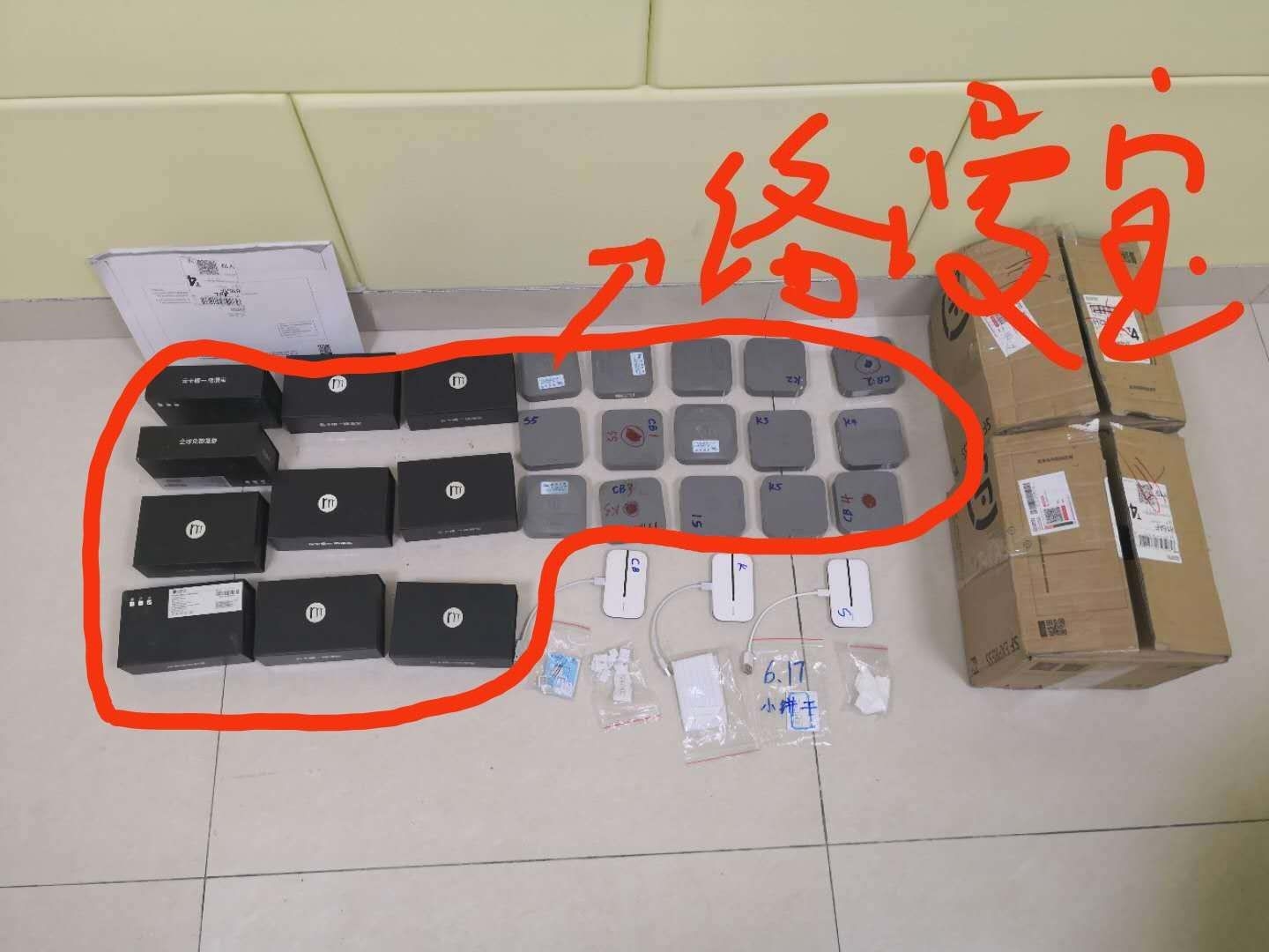 在抓获后,警方当场对犯罪嫌疑人进行了突击审讯,在审讯中,该二人如实供述了自己的犯罪事实、同伙信息及实施犯罪的窝点地址。随后,侦查员循线追踪,将另一同伙黄某绳之以法,并在犯罪窝点成功起获作案工具手机6部,手机卡31张,络漫宝设备25台,无线网络设备3台,大容量充电宝3台。