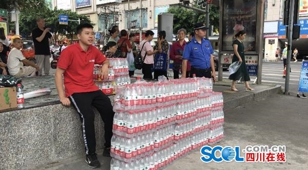 多个公司义务送来矿泉水,发给考生、家长、执勤人员。“天气很热,考生很辛苦,相关工作人员也辛苦,我们过来送点水,尽绵薄之力。”