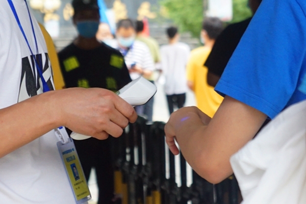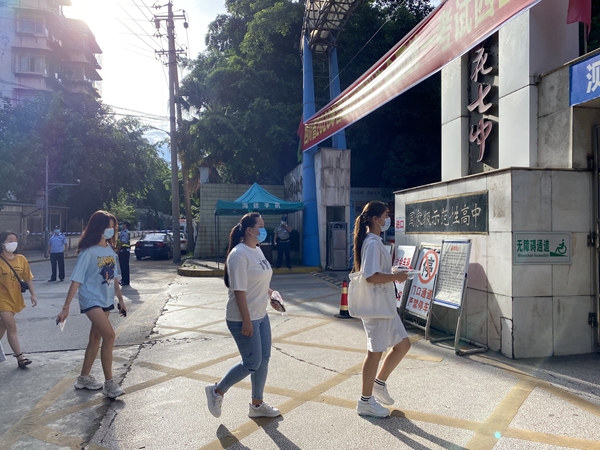 该考点外,公安、消防等多方力量全力维护考场秩序和考生安全,不少家长在考点外等候考生,由于当天最高气温达34度,志愿者们在考场外设置好防晒篷,向等候考生的家长免费提供扇子、矿泉水等防暑物品,“今年高考很特殊,赶上了疫情,高考时间推迟,孩子们很辛苦,群里500多位家长们都希望给考生们加油鼓劲,祝考生们金榜题名。”家长黄女士说。