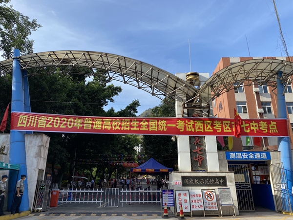 上午8点,在攀枝花西区考区市七中考点, 2102名考生陆续经测温后走进考点大门,该考场设置72个考场,另有7个备用考场,其中4个供出现咳嗽但体温未达37.3度的考生使用,另外3个为发热考场。