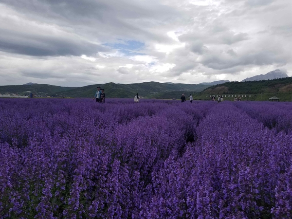 穿过圣地花海的生态停车场,沿着观赏栈道走进薰衣草深处,一抹若有若无的馨香穿过鼻孔刺激神经,让人平静又愉快,迤逦在薰衣草花海之中,游人轻嗅着薰衣草枝顶上簇拥而生的小紫花翩翩如蝶。