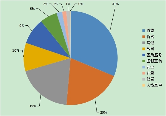 从统计数据来看,商品、服务的质量问题仍居投诉总量之首,成为消费者投诉的主要方面。与去年同期相比,售后服务方面的投诉下降趋势最为明显,价格、计量、人格尊严的投诉比例上升幅度较大。