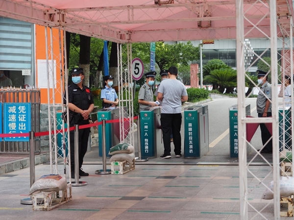 今天是高考的第一天。早上7点,离开考还有2小时,在广元市利州区广元中学考点,就已经有考生抵达考场测体温、验准考证。