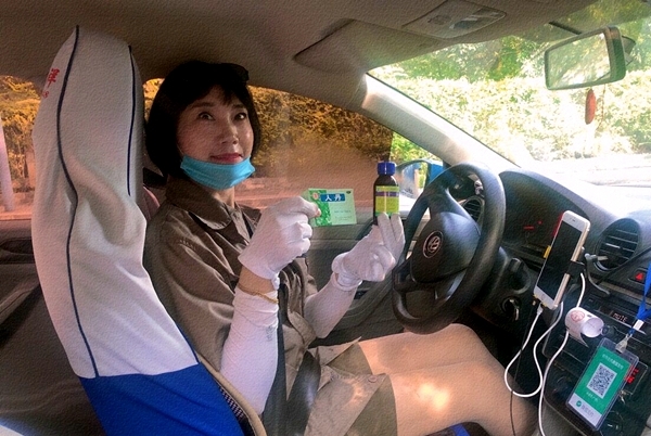 16时40分,爱心出租驾驶员“的姐”王群芳早早驾车来到泸州高中考场旁的等待区。不仅仅将防暑的十滴水、人丹放在副驾驶,王群芳还给学生准备了口罩。