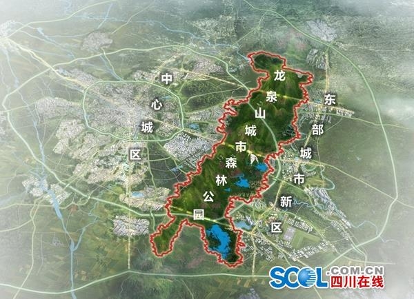 龙泉山城市森林公园区位效果图:“一山连两翼”的城市新格局。