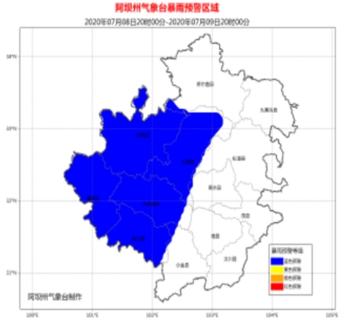 今天下午,阿坝州气象台发布暴雨蓝色预警:7月8日20时到9日20时,受高原低值系统东移影响,阿坝州有一次明显降水天气过程,雨量以中雨到大雨为主,其中,壤塘县、阿坝县、红原县、金川县和马尔康市的部分地方将出现25毫米以上降水,过程来临时伴有雷电、冰雹、阵性大风和短时强降水等强对流天气。