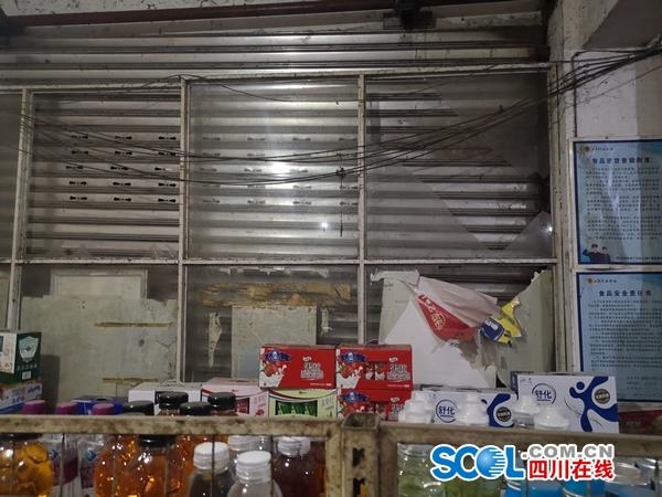 “当时我们在二楼,两个孙儿在床上看手机,(爆炸发生的时候)吓得一下子就跳起来了。”凌晨1点过,记者来到南丰镇元盛村5组村民孙贵云代儿子照看的副食店。副食店共有三个门面,三道卷帘门均有不同程度受损和脱落。记者进入店内,只见店内不少玻璃被震碎,散落在地。货架上的白酒等商品大量跌落,屋内酒味浓郁,还连带砸坏地上的鸡蛋等货品。孙贵云表示,两个孙子已送往广汉市区亲戚家中安置,今晚自己和老伴将不返回家中,暂时在外躲避。