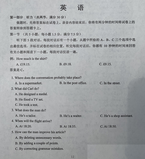 2020四川高考(全国卷3)真题+答案!(文理全科汇总)