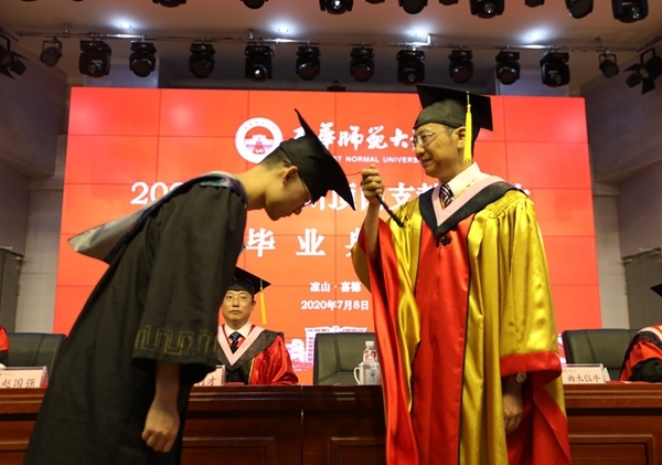 7月8日上午,在凉山州喜德县思源实验学校报告厅,在全校后,西华师范大学又为51名在大凉山顶岗实习支教的大学生单独举办一场小型的毕业典礼和授位仪式。