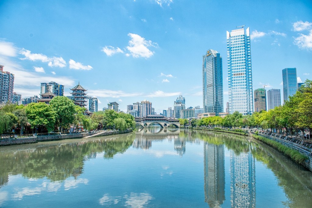 成都,同样因水而成、缘水而兴。自李冰开凿都江堰、“穿二江成都之中”,穿城而过的两江就像一对美丽耳环,环绕成都中心区。时至今日,成都的城市版图已大幅扩展,但“江环城中”的格局一直得到承袭和发展。