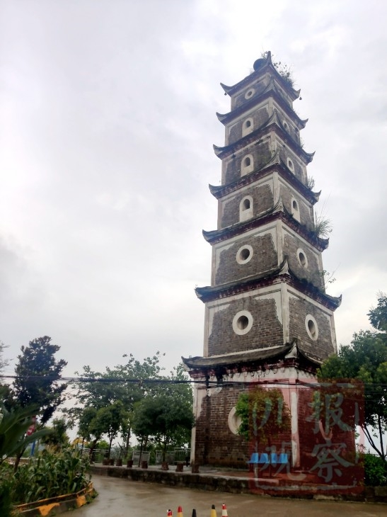 作为距离珠江驿最近的古渡口,这个重要的渡口而今风貌如何?从内江资中县城出发,沿着321国道向城外驶去,道路从大道拐到一条乡村小公路上蜿蜒行驶不久后,路边一个白色的高塔映入眼帘。这个呈四方形,四角攒尖顶的白塔名为“三元塔”,看见此塔就意味着快到唐明渡口。