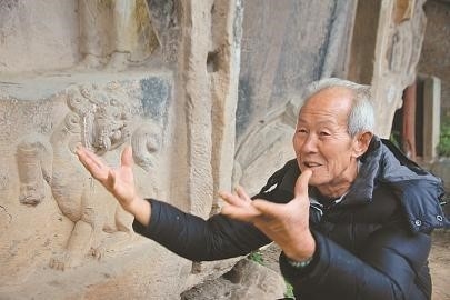 守护北周文王碑的肖太发老人。 (张守帅 摄)
