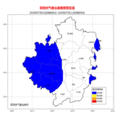 阿坝州气象台预计,10日白天到11日8时,阿坝州有一次较明显降水天气过程,雨量以中雨为主,其中,壤塘县、阿坝县、金川县、马尔康市、红原县西部、九寨沟东部、松潘小河地区、茂县土门地区有大雨,个别乡镇将出现25毫米以上降水,过程来临时将伴有雷电、阵性大风和短时强降水等强对流天气。