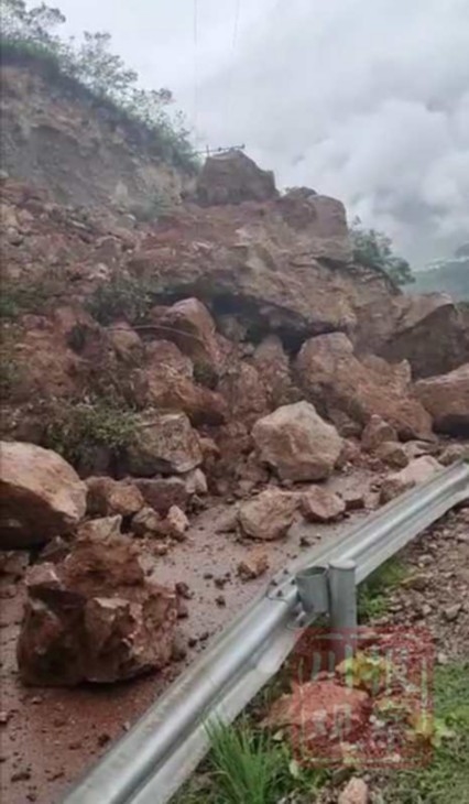 7月12日,因越西降雨天气导致辖区G245国道1003km(小地名:罗马大山)处山体滑坡,请过往车辆注意交通安全。