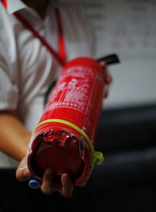 “咣咣咣—”一边是用起来并不顺手的灭火器,另一边是看起来坚不可摧的防盗门,对已经砸得筋疲力尽的郭俊峰来说,体型魁梧的周伟无疑是救援的“生力军”。两人决定重点对门锁位置发动“进攻”,一人砸门时,另一人就扒在门上倾听,过了一会儿哭声消失,两人顿时脸色大变,担心这么小的孩子“就一口烟的事(呛昏)”,二人冒着灭火器受到剧烈撞击有可能爆炸的风险,加大了砸门的力度和频率,持续数十下之后房门终于开了。