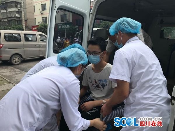 四川在线消息(记者 魏冯/文 黄平/图)7月13日上午11点,完成最后一科考试科目的赵炘宇,被缓缓推出泸县四中考点的一间中考考室,在考场工作人员及医务人员的护送下,小赵同学被救护车送回了正在救治他的医院。自7月11日中考开考以来,泸县兆雅中学赵炘宇,在泸县唯一的一间特殊考室,完成了他所有的考试科目,他也是这间考室唯一的考生。