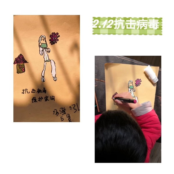 汤智鹏的这些创作过程都有儿子陪伴。值得一提的是,儿子利用牛皮纸画了一幅“抗击病毒保卫家园”作品,入展了北京金正德书画院发起的“众志成城抗击疫情主题书画展”,这幅作品还被光明网刊发。
