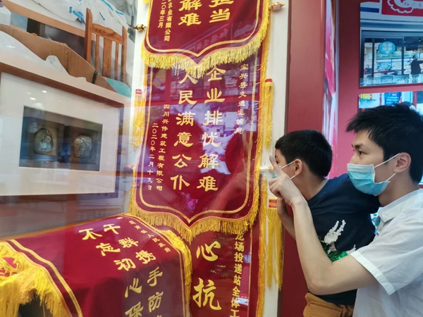 正在四川博物院举行的“战疫——四川抗击新冠肺炎疫情专题展”上,摆放着大量实物展品。其中,有一组“刚柔相济”的展品,让观众好奇驻足。
