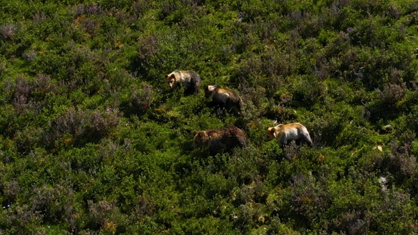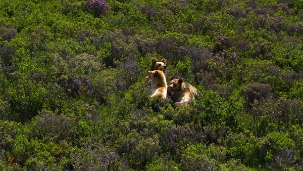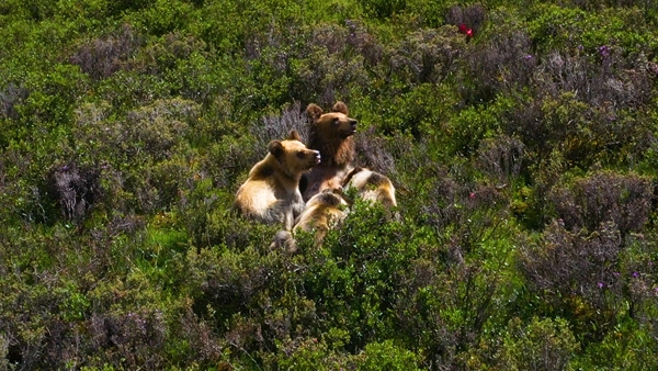 13日中午14时左右,有网友在石渠县蒙宜镇蒙格村附近一处水草丰茂的山坡处,偶然抓拍到了一家四口憨态可掬的棕熊。那时,熊妈妈正晒着日光浴,给三只嗷嗷待哺的小熊喂食母乳,十分悠然自得。喂食完后,一家四口才缓缓向大山深处走去,仿佛熊妈妈专程带熊宝宝们出来春游,享受这美好的春光。