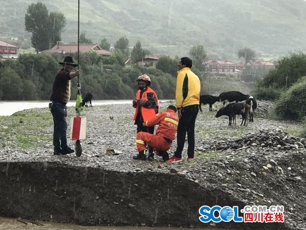 四川在线消息(泽翁曲珍 记者 陈松)7月14日下午,甘孜州炉霍县玉麦比村湿地公园3名群众因河坝决堤被困孤岛急需救援,现场水流湍急,形势十分严峻。