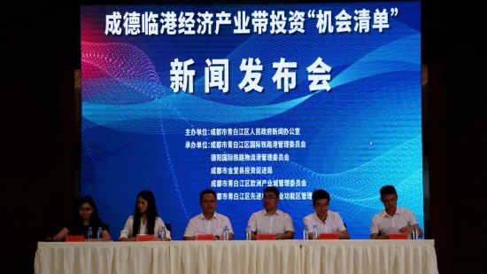 7月15日,为加快同城化发展进程,成德临港经济产业带投资“机会清单”新闻发布会在成都国际铁路港召开。涉及成都国际铁路港、德阳国际铁路物流港、金堂淮州新城、青白江欧洲产业城、青白江先进材料产业功能区5个临港经济核心区,首次发布高质量发展机会清单。