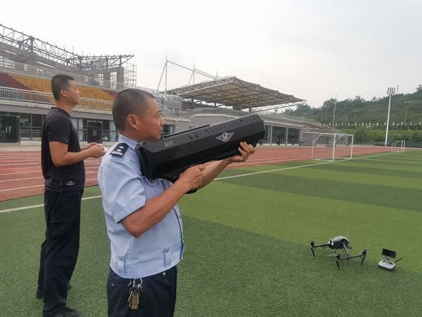 现场假设有3架“低慢小”飞行器进入眉山某重点公共区域低空,眉山市公安局立即启动无人机反制预案,并发出处置指令,眉山市公安局特巡警支队警用无人机驾驶航空器警务航空大队队员王翼翔立即携无人机反制装备抵达现场,对其进行反制,最终,3架无人机被成功驱离。