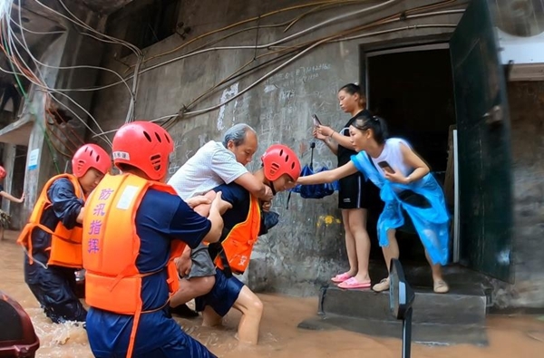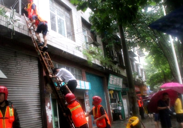 在广安市前锋区,暴雨致一门市被淹,4人被困,其中有2名老人,消防人员赶到后,成功将4名被困群众疏散至安全地带。目前,降雨仍在持续,消防救援队伍正在有序开展排涝清淤工作。