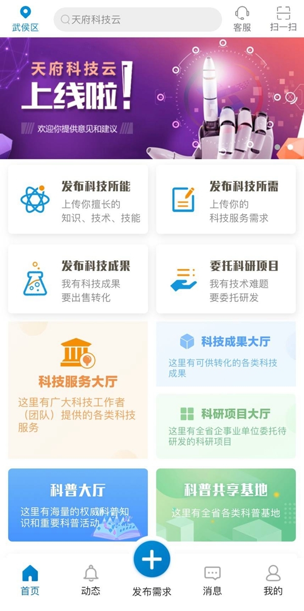 买家则是有科研需求的广大企事业单位。过去,他们有需要找专家人才、开展项目研发及技术服务转让时,只能通过询问相关储备关系,工作不仅效率低下,还真伪难辨,匹配度低。现在,他们只需要拿出手机或打开电脑,通过天府科技云APP或网站发布自己急需的“科技需求”,自然会有卖家找上门。