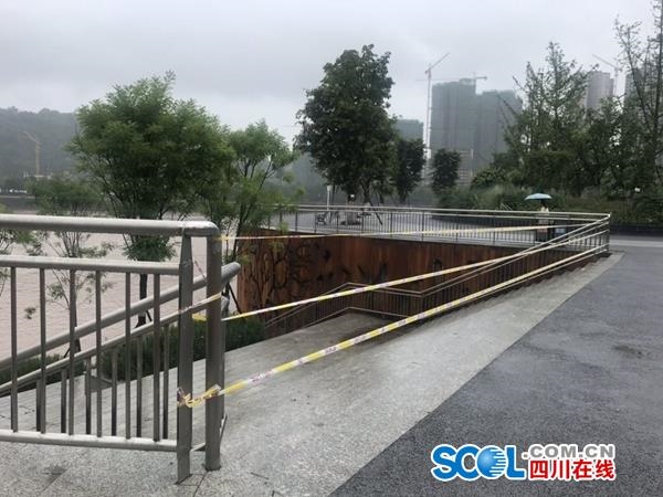 塔沱湿地公园位于州河边,记者在现场看到,整个公园已拉起安全警戒线,洪水已有消退迹象,但公园坝子依旧处于淹没状态。