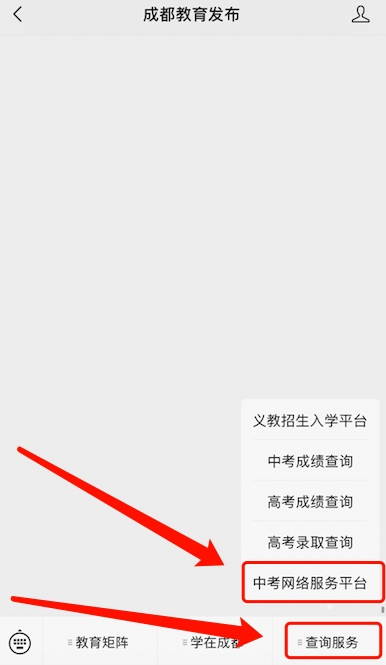 点击下方菜单栏“查询服务”,进入“中考网络服务平台”