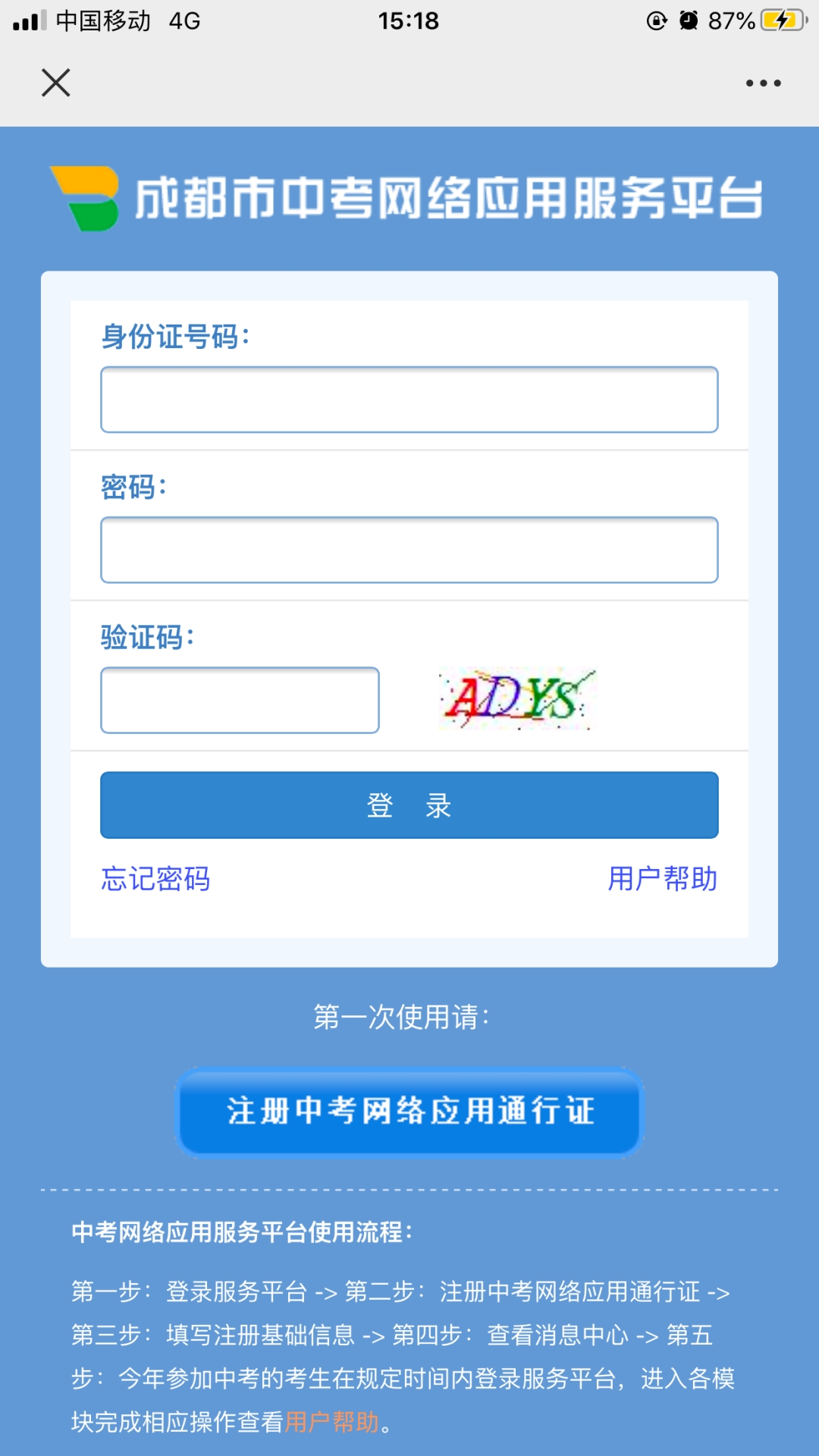 考生凭中考网络应用通行证(身份证号和密码)登录中考网络应用服务平台,进入“志愿填报及查询”系统中“填报中考志愿”进行填报。登录方法如下: