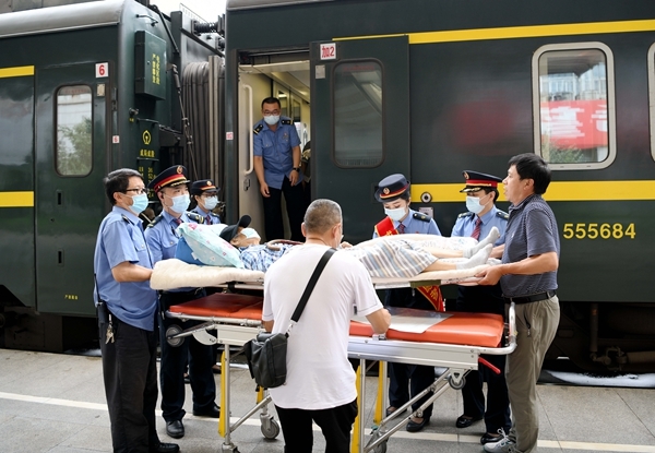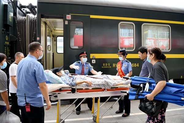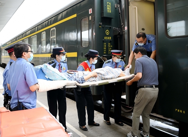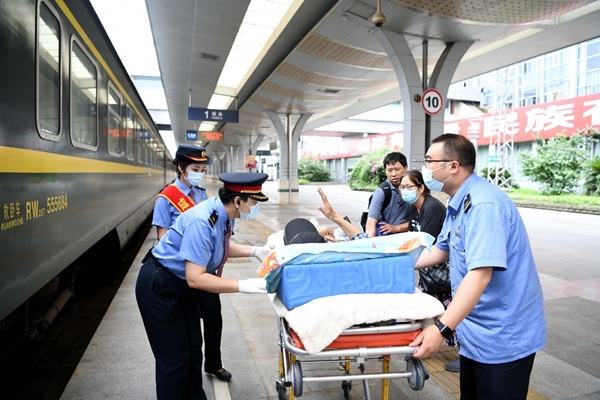 四川在线消息(胡志强 记者 李向雨)7月17日9时30分,成都站张允先锋岗接到旅客李某的求助,希望车站能够帮助他们搭乘当日的Z50次列车前往汉口站,在询问到旅客具体情况时,工作人员发现这次任务难度很高。原来其中一位旅客已有86岁高龄,因双腿骨折不能站立,需要全程使用卧位担架运送。
